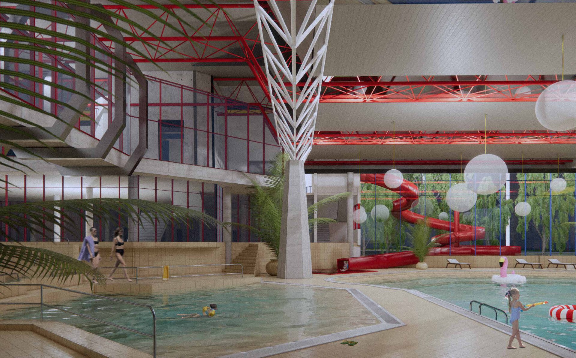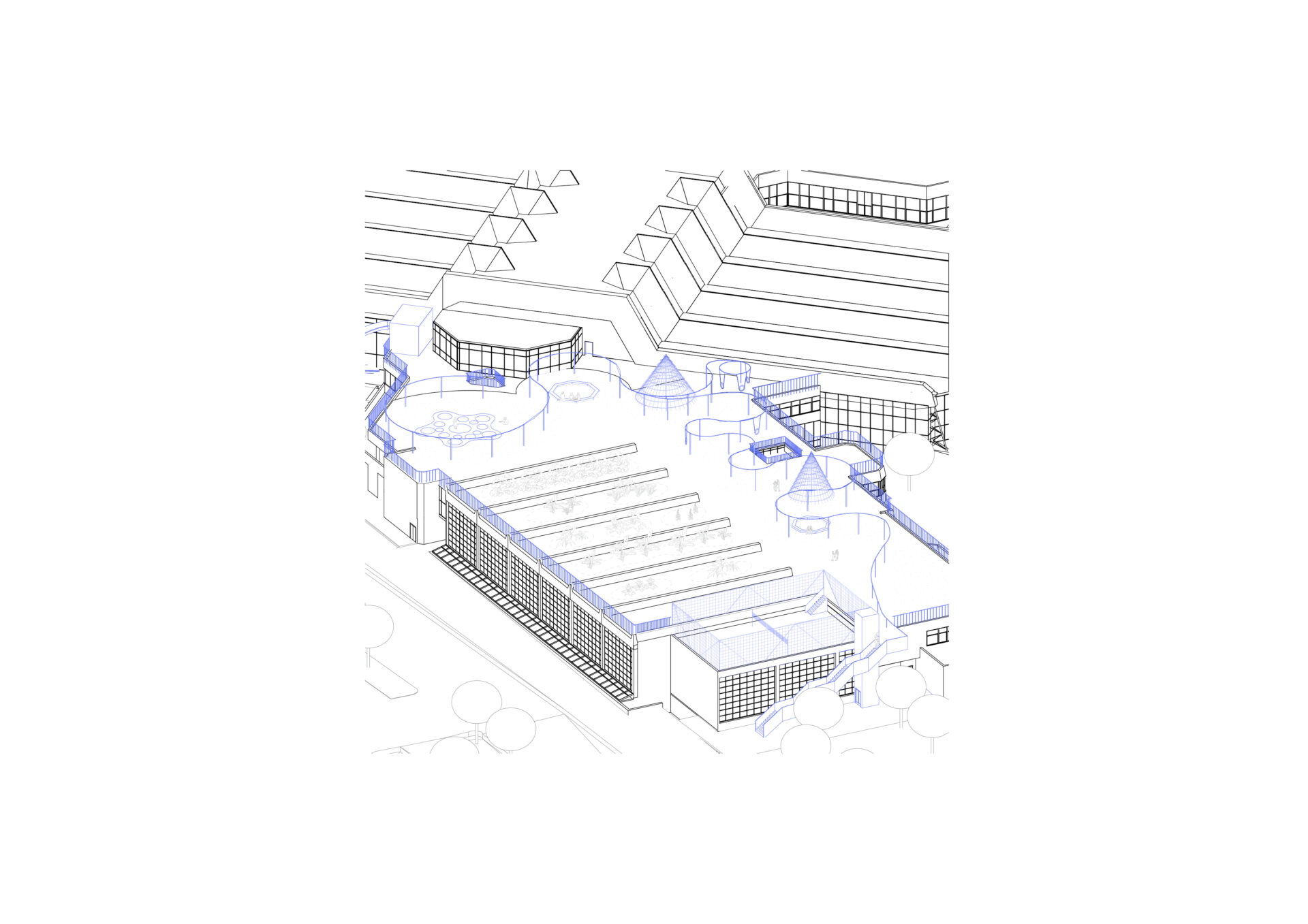 Diese Masterarbeit setzt sich für den Erhalt des SEZ als gesellschaftlich nutzbaren Raum ein. Statt Abriss wird eine transformative Teilnutzung vorgeschlagen, mit einem Schulneubau im Bestand und einer Öffnung des Gebäudes für den Stadtteil. So wird Leerstand zum Möglichkeitsraum für Bildung, Teilhabe und Erinnerungskultur.