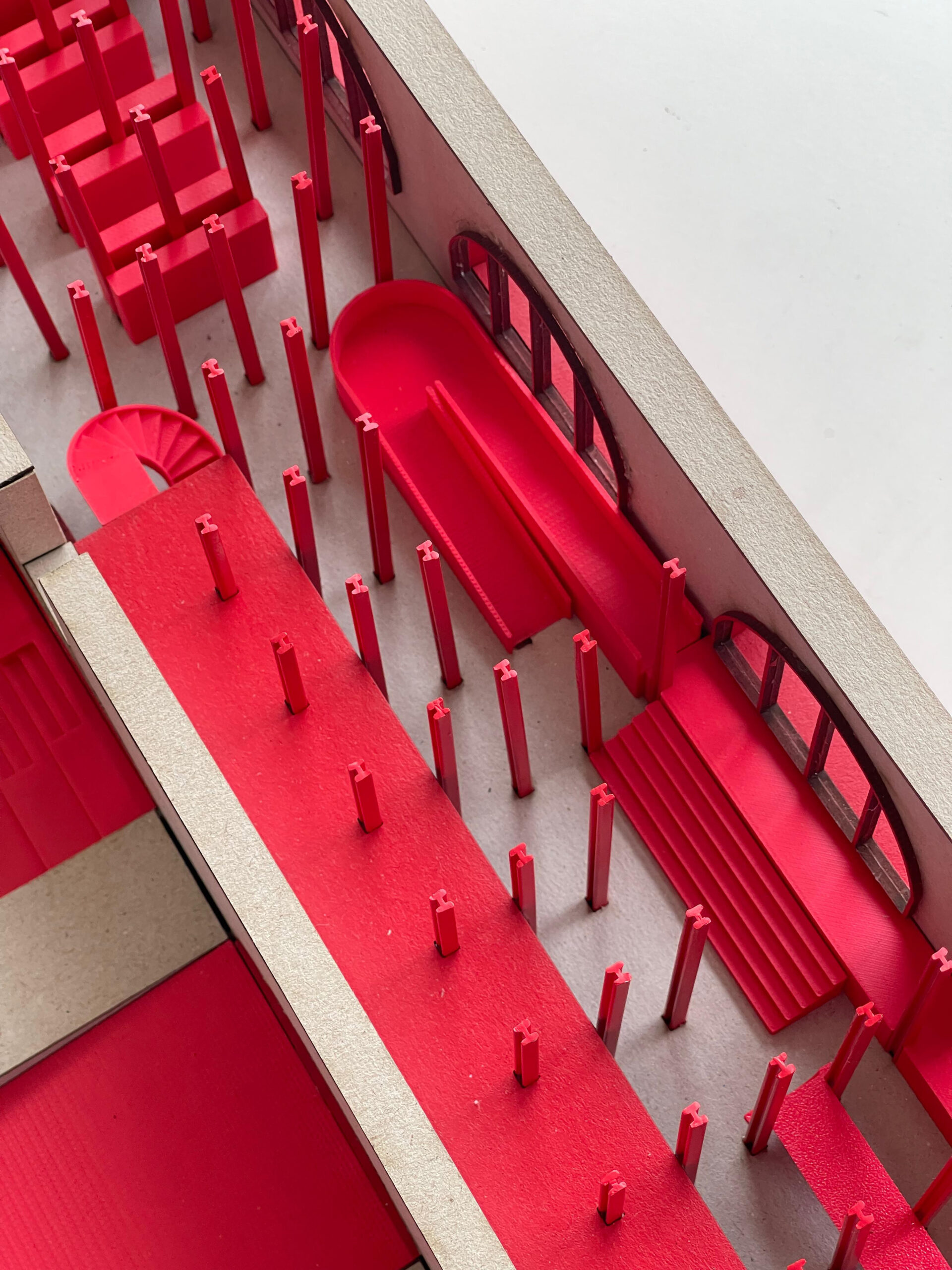 A spatial journey unfolds: visitors enter through the Steel Forest, where 100 untouched steel columns are mirrored on the ceiling to evoke vertical infinity. From there, the Six Tubes—former barrel-vaulted cooling chambers—are transformed into hybrid workshop, bar, and exhibition spaces through glass arches, mezzanines, and a flowing ramp system. The Art Corridor leads to the Performance Hall, the former storage tank department, a vast, flexible 30x30m gathering space stripped to its raw core—open to constant reinvention.From circulation strategies to barrier-free access, from spatial sequencing to minimal, precise interventions—every move was about amplifying what was already there. Beyond architecture, this is a spatial act of empowerment—offering GSBTB and its communities a place shaped by participation and care. It is not just a renovation—it is a reinvention. A space ready to grow, shift, and evolve with its users over time.